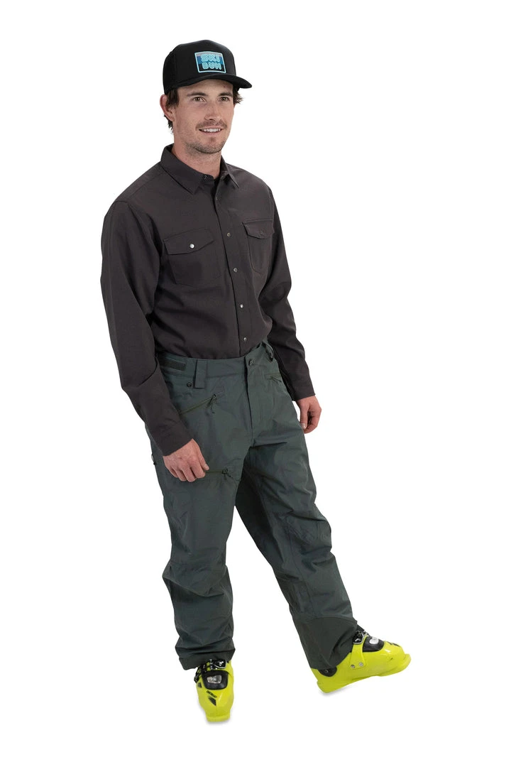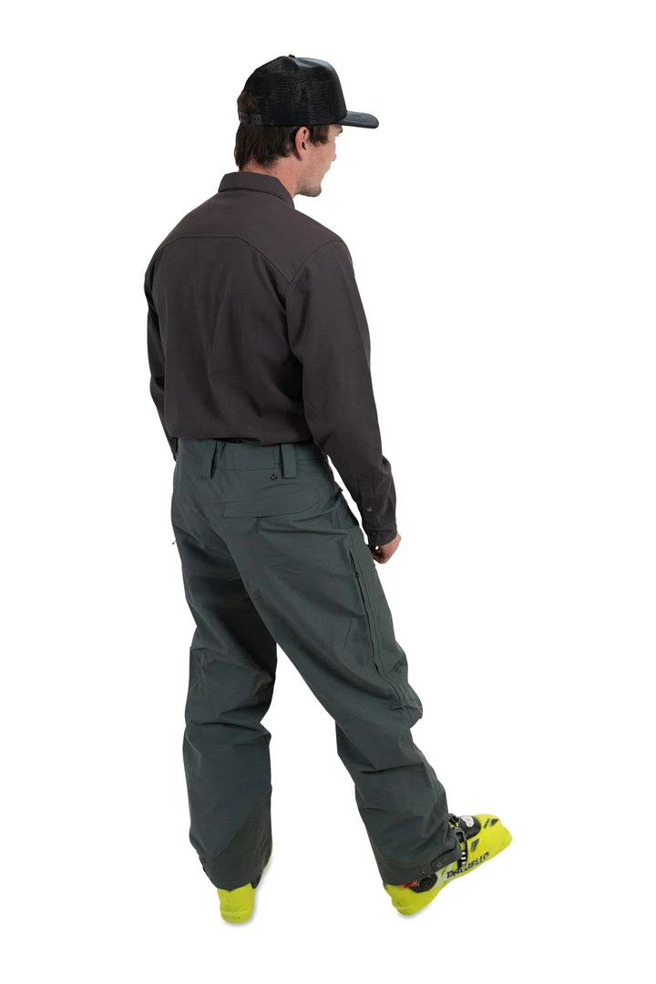 You get both utility and style in the all-purpose Cage Pant, lightweight and packable freeride pants made for ripping steeps, building kickers, and shoveling the deck. The burly, waterproof Stark 3-layer fabric blocks wind and sleet, while outer thigh vents and a breathable membrane keep moisture out. Two hand pockets plus a substantial thigh pocket store your phone and everything else.
