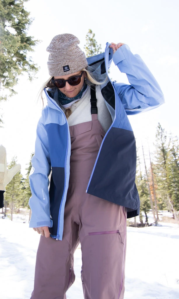 If you like your ski pants with more of a straight leg fit, then the Moxie Bib is for you. Designed with a relaxed fit and tomboy vibe, it’s got all the fixings of a top-notch bib: bomber Surface 3-layer fabric on the thighs and seat, mixed with stretchy and waterproof Tactic 3-layer softshell fabric, spacious pockets for stashing your phone (and chocolate peanut butter cups), and a handy drop-seat for going to the loo. The fabric on the knees and seat are built extra durable for the mountain’s many obstacles.